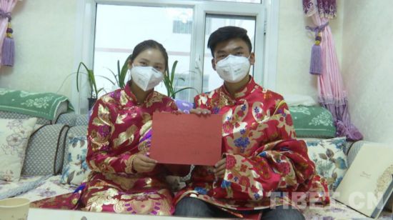 中國西藏網訊 正月初六,暖陽高照。面對新型冠狀病毒感染的肺炎疫情,甘肅省天祝藏族自治縣藏族小伙愛智和來自四川省南充市的姑娘才萍拉毛,舉辦了一場隻有“兩個人”的特殊婚禮。