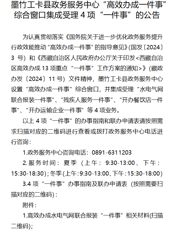 拉薩墨竹工卡縣政務服務中心“高效辦成一件事”綜合窗口集成受理4項“一件事”的公告