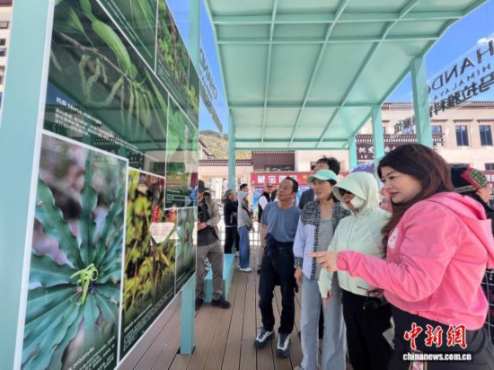 9月5日下午,參與項目啟動的部分專家學者和媒體代表,參觀林芝市生物多樣性科普宣傳微展覽。潘旭臨 攝