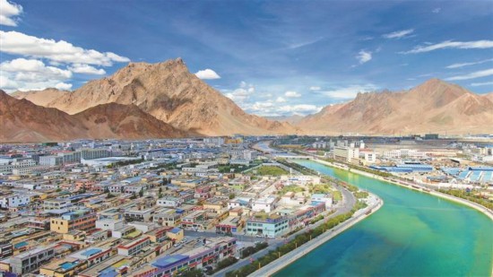 圖為綠意環繞的獅泉河鎮。 記者 洛桑旦增 達珍 永青 攝