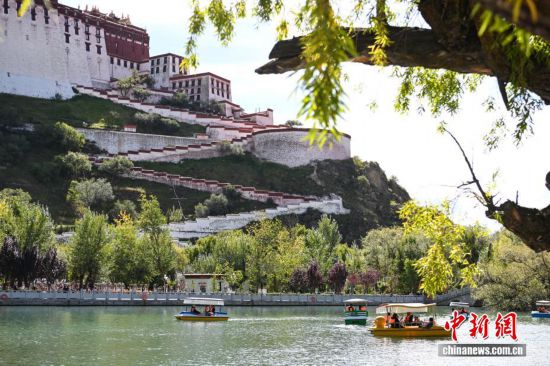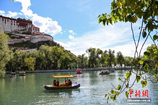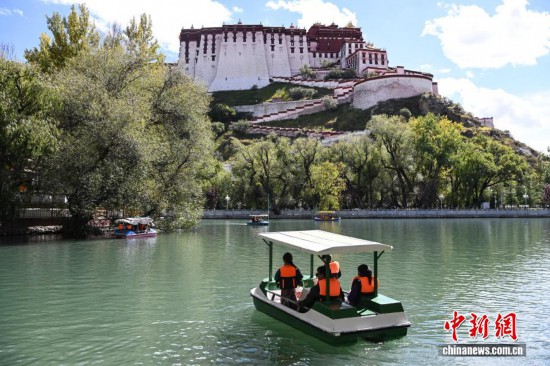 10月6日,西藏拉薩市宗角祿康公園人氣爆棚。人工湖畔游船碼頭前,游客有序排隊登船,各色游船在碧波上緩緩前行,與岸邊的秋景、遠處的布達拉宮相映成趣。據悉,國慶假期,游船接待量較平日增長近三成,成為市民游客親近自然、歡度國慶的熱門選擇。中新社記者 貢嘎來鬆 攝