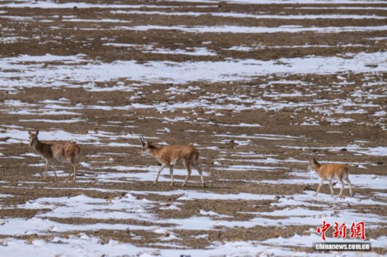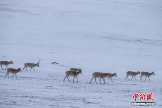 近日,中新網記者在西藏自治區阿裡、那曲等地記錄到藏羚羊群活動影像。畫面中,藏羚羊群或低頭覓食,或結伴而行,在高原的雪原與草原之間勾勒出和諧畫卷。據悉,近年來,西藏藏羚羊種群規模一直持續擴大。2024年西藏自治區生態環境廳發布的《2023西藏自治區生態環境狀況公報》顯示,西藏境內藏羚羊數量增長到30多萬隻。圖為10月9日,在西藏阿裡地區拍攝到的藏羚羊群。江飛波 攝
