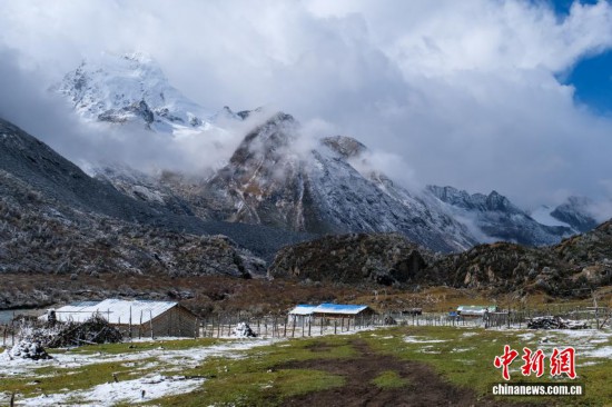 嘉黎縣位於西藏自治區那曲市東南部,據悉,該縣氣候特殊,印度洋的暖濕氣流沿易貢藏布河谷溯江而上,直抵嘉黎縣境內的念青唐古拉山脈南麓,輸送了大量寶貴的水分,造就了迷人的峽谷森林和海洋性冰川等風光,因此,嘉黎縣也被譽為藏北“江南”。近日,中新網記者自駕嘉黎縣看到,這裡既有藏北草原風光,也有風景秀麗的原始森林、冰川峽谷等,深秋的嘉黎風光如畫。圖為10月17日,嘉黎縣尼屋鄉高山牧場迎來大雪。江飛波 攝