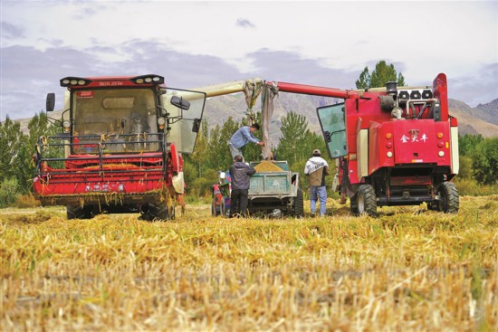 圖為乃東區群眾正在秋收(資料圖片)。