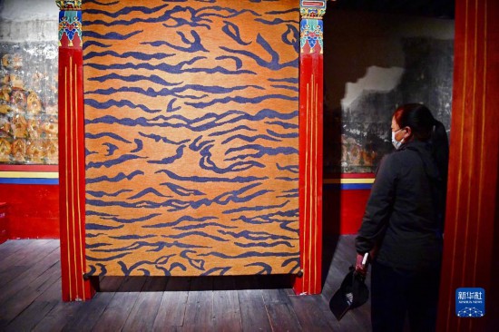 4月9日,观众在展厅内欣赏“虎毯”。新华社记者 张汝锋 摄
