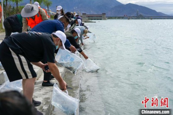 图为7月12日,拉萨河畔放流活动现场。 江飞波 摄