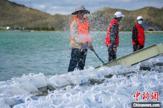 图为西藏特有鱼类增殖放流活动现场。 江飞波 摄