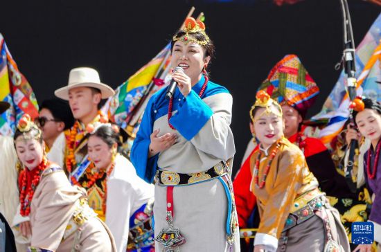 这是9月15日拍摄的开幕式上的女声独唱《藏东明珠》。新华社记者 格桑朗杰 摄