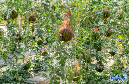 10月15日拍摄的墨竹工卡县现代农业示范园内种植的西瓜。新华网 旦增努布 摄