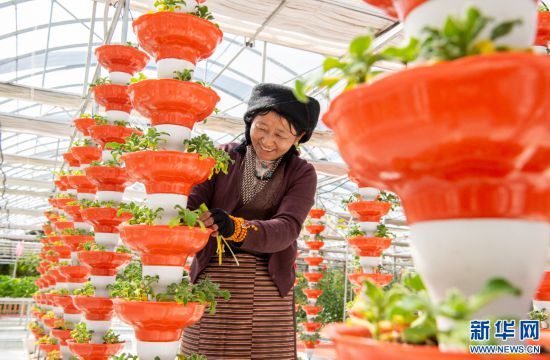 10月15日拍摄的墨竹工卡县现代农业示范园内种植的蔬菜。新华网 旦增努布 摄