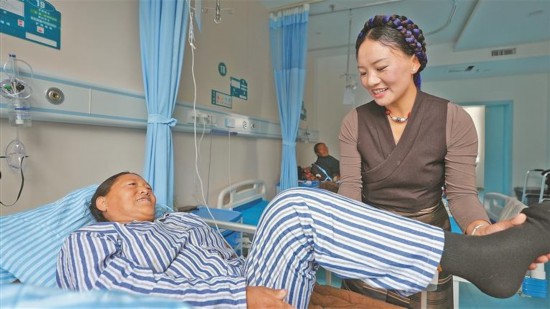 图为患者在进行术后康复训练。记者 格桑伦珠 摄