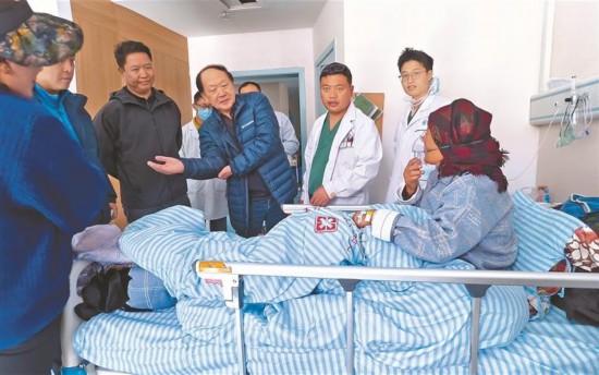 图为南京市第一医院关节外科专家团队了解患者术后康复情况。记者 格桑伦珠 摄